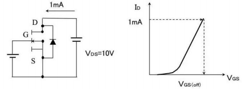 ➡ Gate threshold voltage VGS(off)or VGS(th):