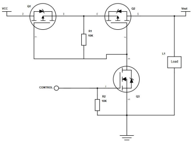 First of all, it should be clear that anti-reverse connection and anti-backflow are two different things. This circuit realizes anti-backflow through two back-to-back PMOS. When CONTROL is at a high level, the NMOS of Q3 is turned on, the G poles of Q1 and Q2 are pulled down, and after Q1 is turned on, Q2 is also turned on, and the circuit is powered on. When CONTROL is at a low level, Q3 is turned off, Ug = Us of Q1 and Q2 is cut off, and the circuit is turned off. At this time, the body diode of Q1 is in reverse connection, which plays the role of anti-backflow.